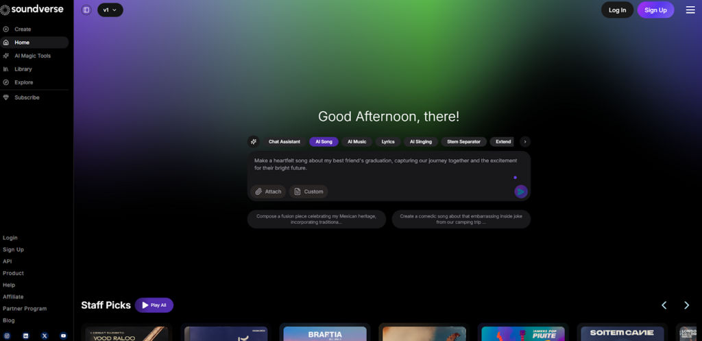 Soundverse AI came across as a platform built for those who like order without sacrificing creativity. The layout is neat, the options are clear, and the whole process feels engineered for efficiency. I tried generating a few tracks by feeding it detailed prompts, and the outcomes were sharp, on-point, and surprisingly nuanced.